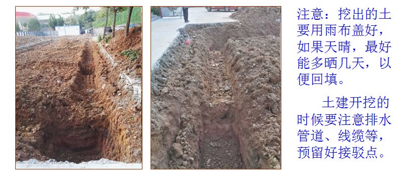 按照土建設計要求,在己經定好位的基坑點和整個車庫安裝范圍進行開挖,具體開挖深度和寬度要嚴格按照設計圖來進行。